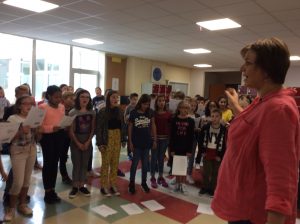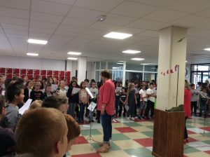 Lundi 3 septembre, la rentrée scolaire pour les 6ème a eu lieu en musique ! Mme Prévitali, professeur d’éducation musicale, a proposé aux nouveaux élèves de travailler deux chansons « Allez ! Allez ! Allez ! » et « On écrit sur les murs » afin de commencer l’année sous le signe de la joie. Les élèves, accompagnés de Mme Gueguen et M. Degremont, ont chanté en fin de journée devant les parents présents. Galerie photos :